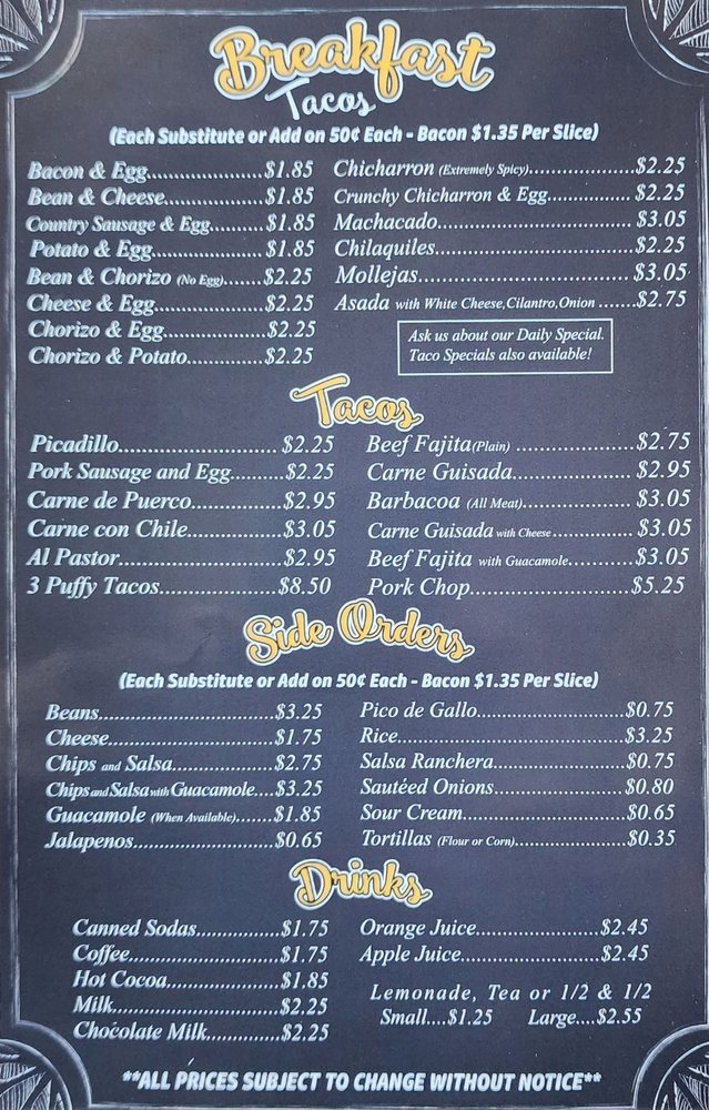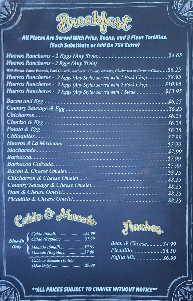 The menu features a variety of dishes, including standout options like the flavorful Carne Guisada, drawing both locals and visitors. With amenities such as takeout services and ample outdoor parking, convenience complements the culinary offerings. Brunch lovers will appreciate the diverse selection available throughout the week.